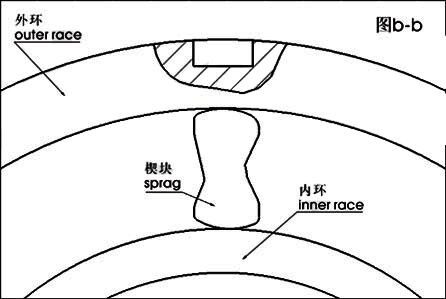 此種型式可設計出各種形式的楔塊及保持器以滿足各種不同的特性需求。其特點是傳遞矩扭矩大,使用壽命長。(如圖b-b)
